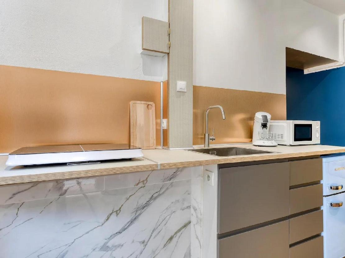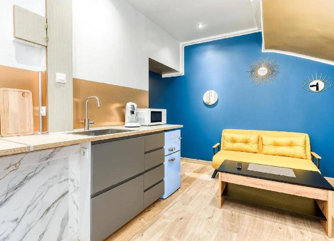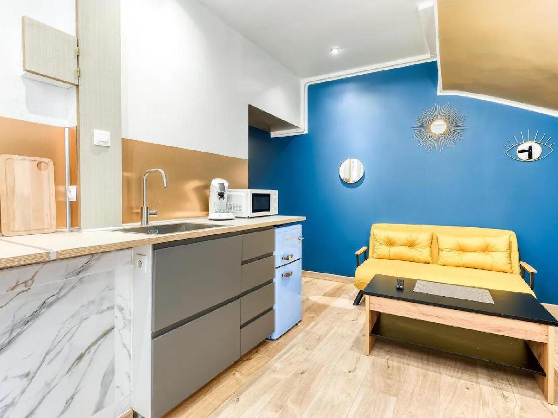 Au rez de chaussée deux studios, un F1 avec cuisine séparée donnant sur jardin d'environ 30 m².